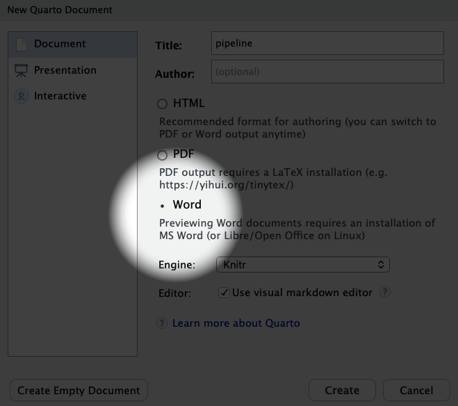We can run each bit of the code inside the quarto doc (to make sure everything works as we want and see the outputs) as well as run the whole thing to compile the final doc.